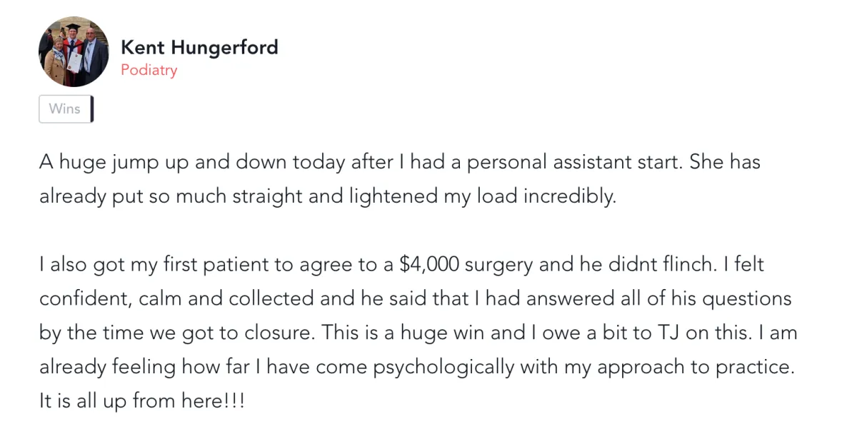 "Even if I was making 7 figure revenue, my expenses were so high. My take home net profit was ridiculously low. Now I am in your mastermind and implementing your systems in my practice, things are so much more efficient and my profits has increased tremendously without adding more work hours"